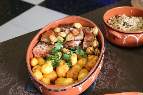 Arroz de cabrito com cogumelos e castanhas