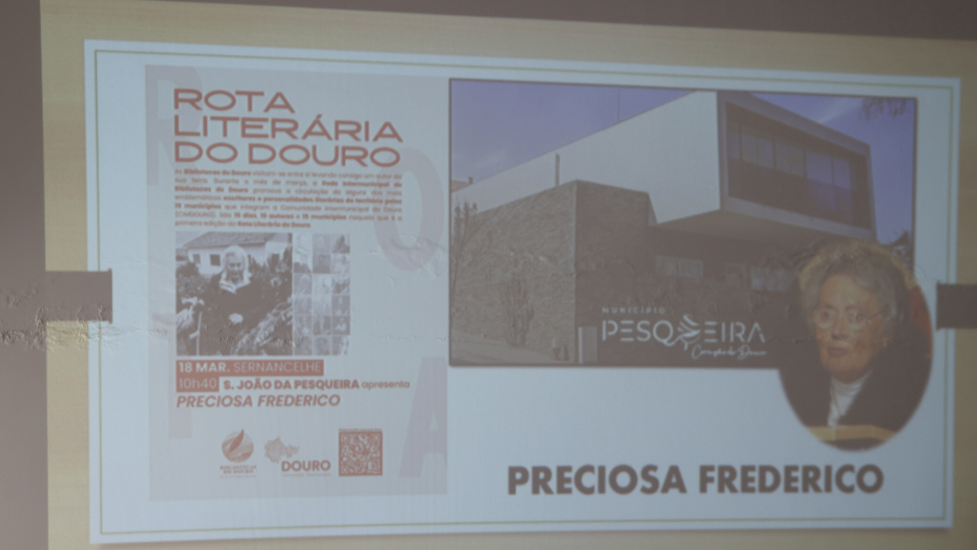 A Biblioteca Municipal Abade Vasco Moreira, acolheu esta quarta-feira, 18 de março, uma sessão dedicada à escritora Preciosa Frederico, inserida na primeira edição da Rota Literária do Douro. A iniciativa foi dinamizada pela própria D. Preciosa Frederico, que completa 100 anos, em junho deste ano, e Maria dos Anjos, Bibliotecária de S. João da Pesqueira, acompanha pelo Vice-Presidente da Câmara Municipal de São João da Pesqueira.